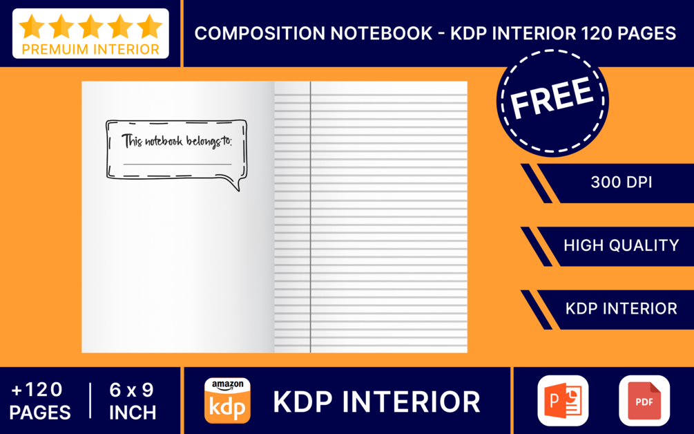 - 120 Page Composition Notebook PDF Document That Is Ready To Upload To Amazon KDP As A No Content Book Interior.